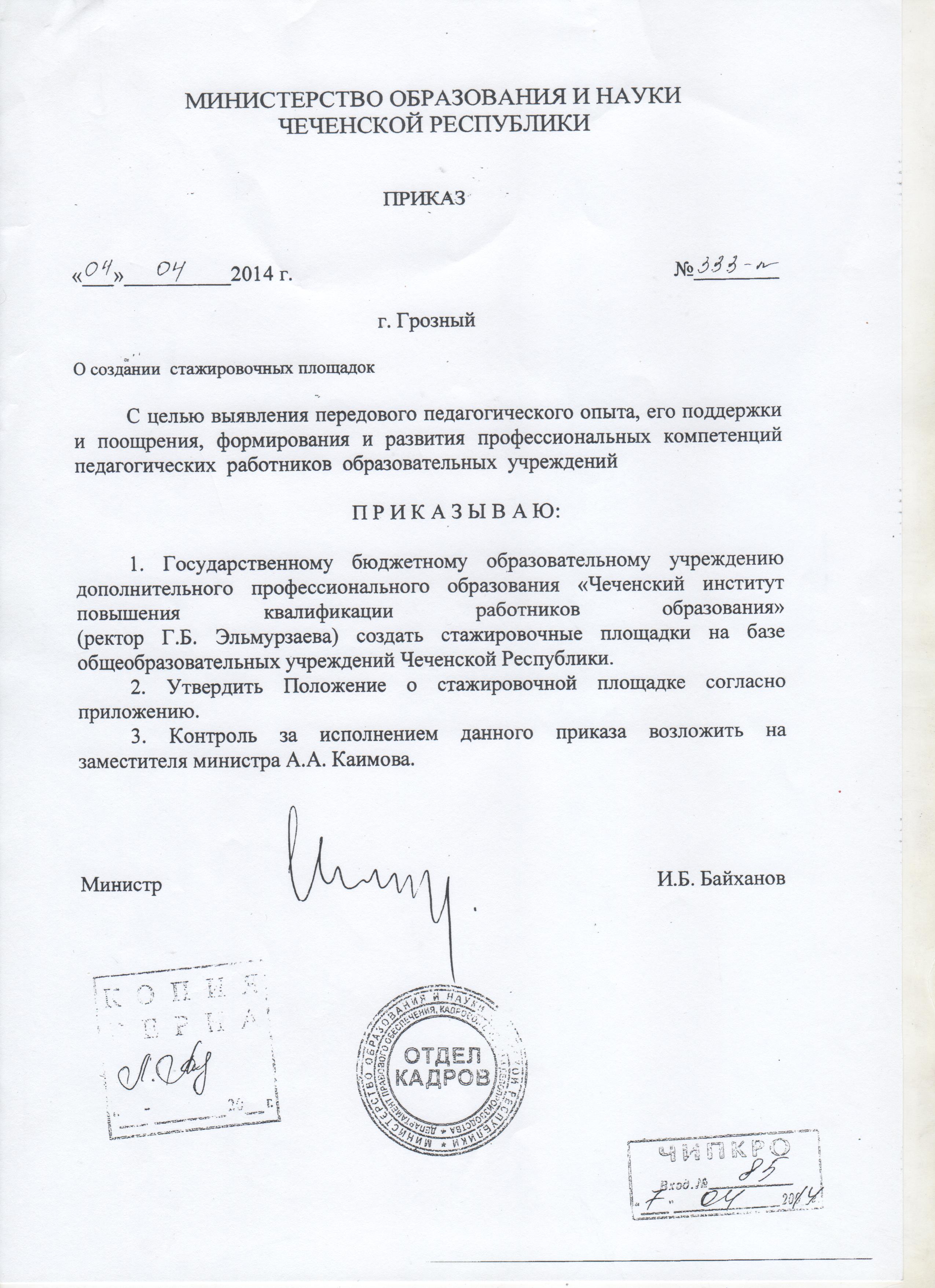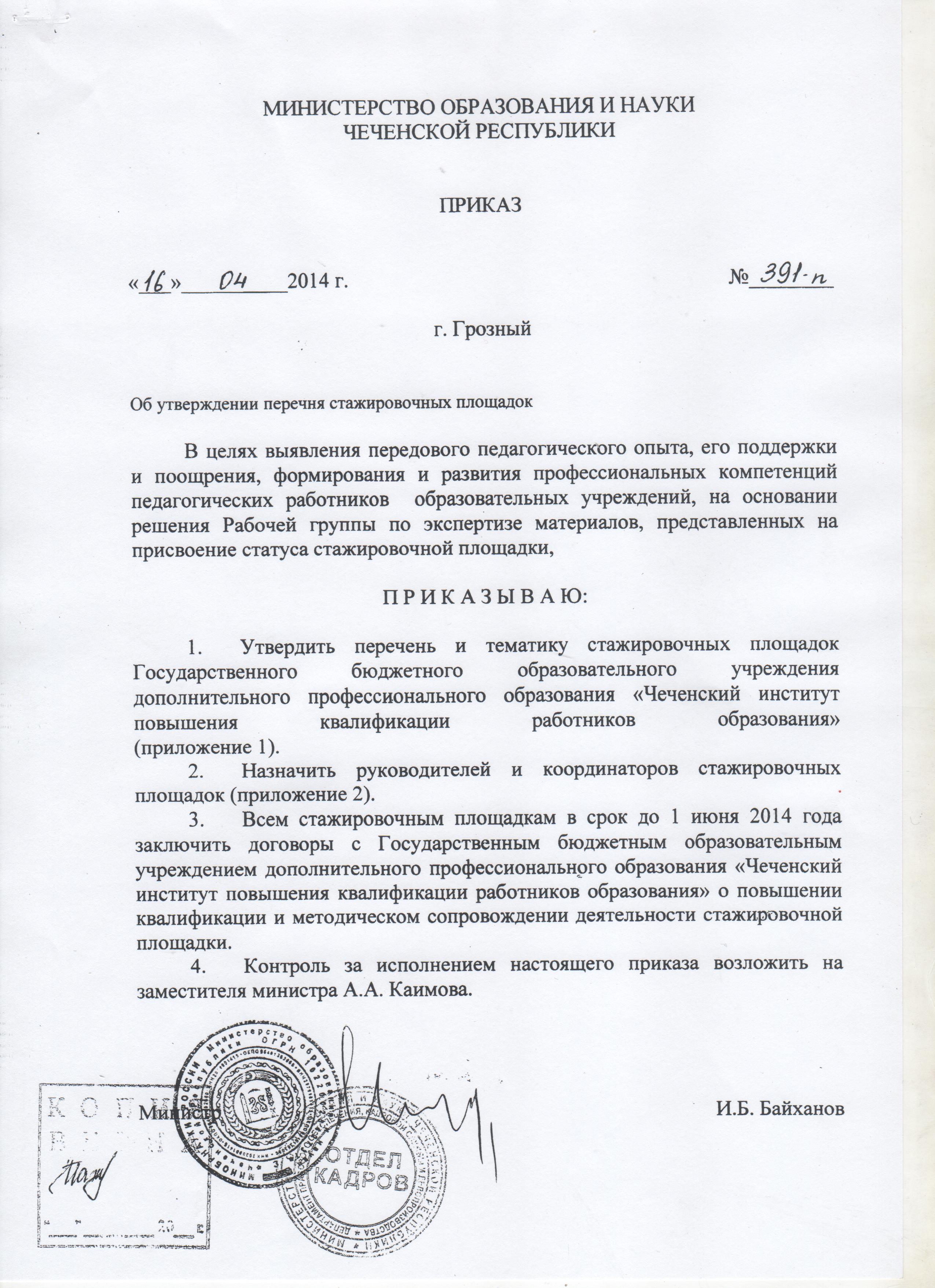 - Приказ МОиН №391-n от 16.04.2014 "Об утверждении перечня стажировочных площадок" скачать
