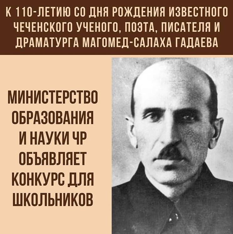 В честь юбилея Магомед-Салаха Гадаева Министерство образования и науки ЧР совместно с Академией наук ЧР объявляет конкурс на лучшие произведения о его жизни и творческой деятельности среди учащихся республиканских школ.