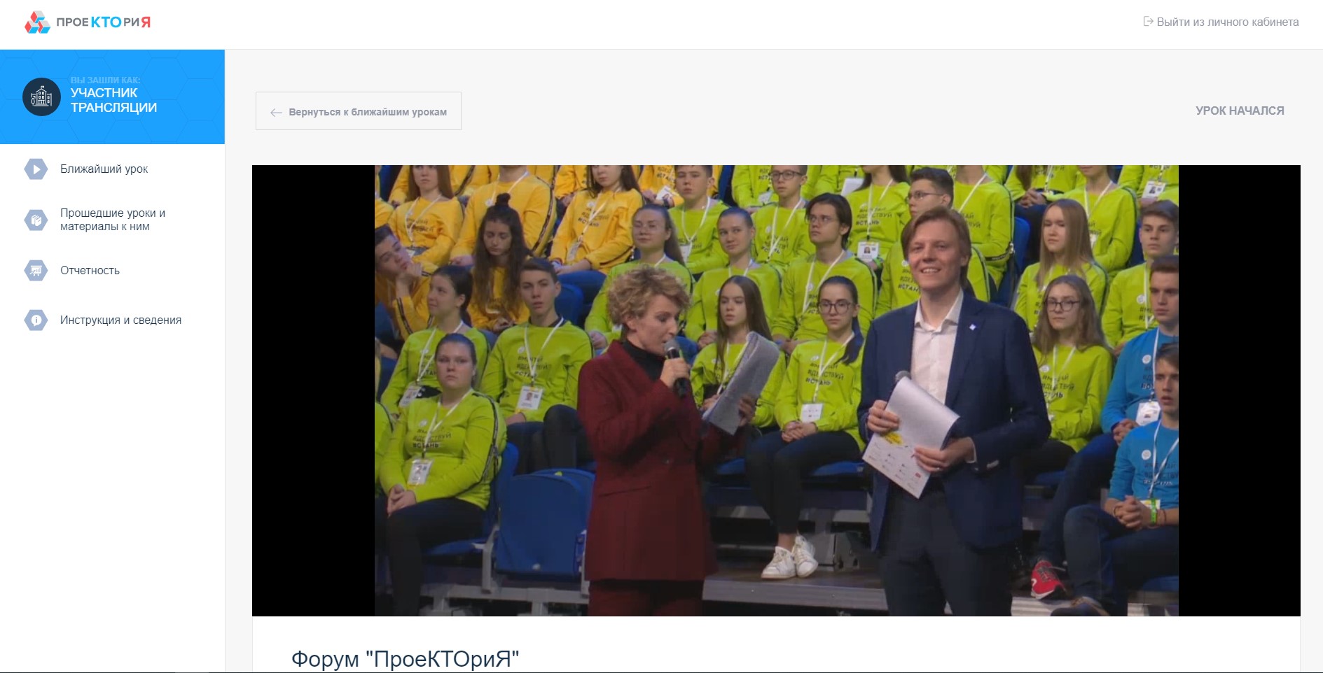 26.11.2019Большой открытый урок «Школа завтрашнего дня» на портале «ПроеКТОриЯ» (https://proektoria.online) в интерактивном формате в виде дискуссий и игровых практик от ведущих индустриальных экспертов и бизнес-лидеров проссмотрели учащиеся 11-ых классов МБОУ "Гимназия №2" г.Грозного.