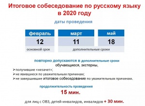 Согласно Порядку проведения государственной итоговой аттестации по образовательным программам основного общего образования 11.03.2020 состоитсо повторно итоговое собеседование в 9-ых классах.