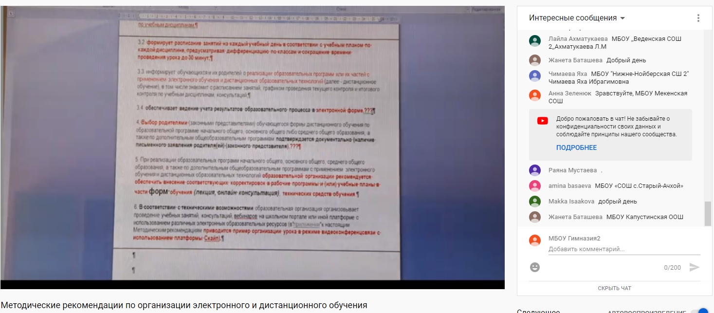 27.03.202027 марта 2020 года в 14.00 сотрудники МБОУ "Гимназия №2" г.Грозного прослушали вебинар по вопросам организации образовательной деятельности в условиях угрозы распространения новой коронавирусной инфекции "Методические рекомендации по организации электронного и дистанционного обучения". Подключение к вебинару – на канале youtube по ссылке: CHIPKRO 95 https://www.youtube.com/channel/UC4JstR8NrXGOWcdtTWjRjrg.