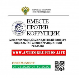 19.06.2020Генеральная прокуратура РФ запустила молодежный конкурс социальной антикоррупционной рекламы «Вместе против коррупции!».