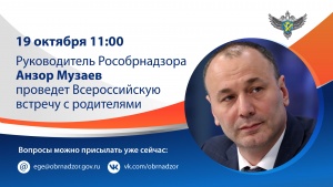 09.10.2020Всероссийская встреча с родителями руководителя Федеральной службы по надзору в сфере образования и науки Анзора Музаева пройдет 19 октября 2020 года в 11:00 мск.