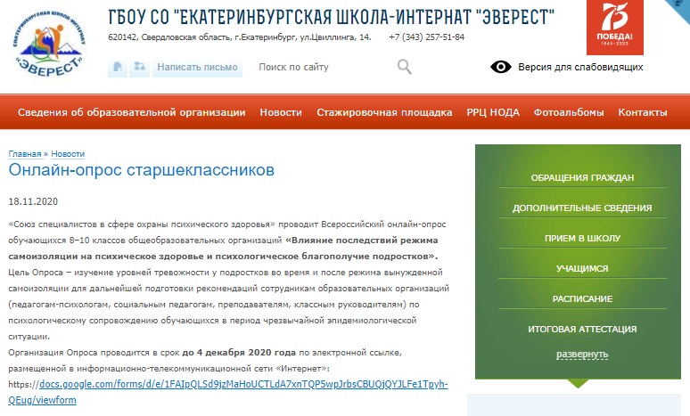 Организация Опроса проводится в срок до 4 декабря 2020 года по электронной ссылке, размещенной в информационно-телекоммуникационной сети «Интернет»: https://docs.google.com/forms/d/e/1FAIpQLSd9jzMaHoUCTLdA7xnTQP5wpJrbsCBUQjQYJLFe1Tpyh-QEug/viewform