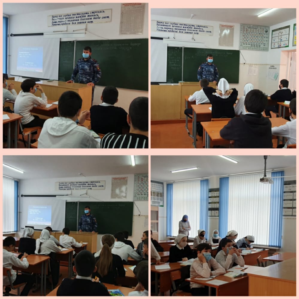 20.01.202120.01.2021г.В МБРУ "Гимназия №2" инспектор ОПДН УМВД и ПДН Управления МВД России по г.Грозный Майор полиции Гайсумов Магомед Якубович совместно с администрацией гимназии провели профилактичекую беседу на тему: "Дисциплина в гимназии" среди обучающихся 6-8 классов.