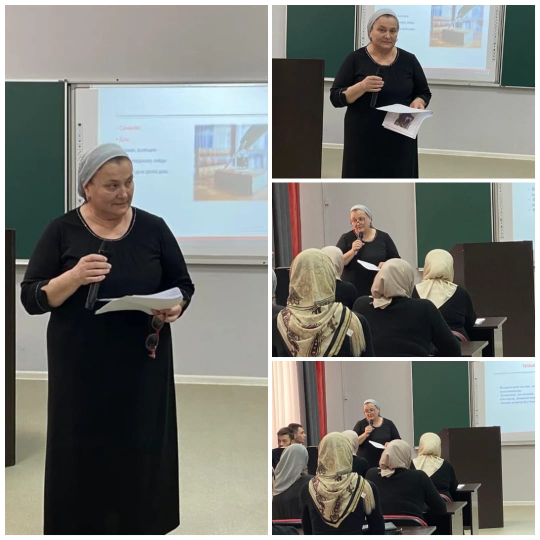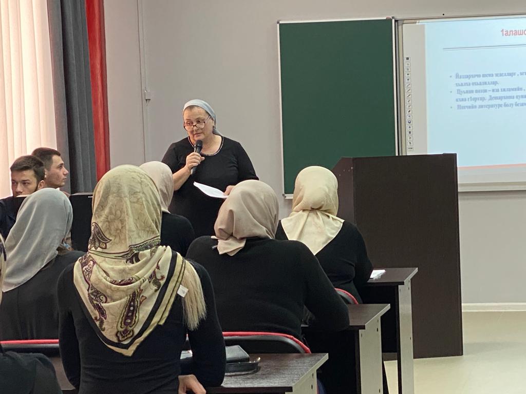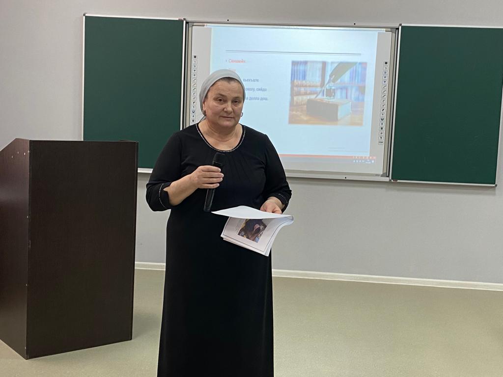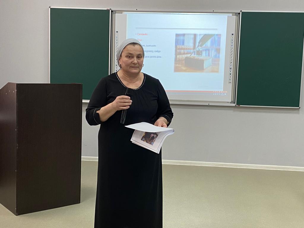 19.02.2022На базе МБОУ" Гимназия 5" г.Грозного 19.02.2022 г. прошел городской семинар на тему: "Воспитание духовно-нравственных качеств школьников на уроках чеченского языка и литературы" для учителей и молодых специалистов преподающих в 9-х классах. Учитель чеченского языка и литературы МБОУ" Гимназия 2" г. Грозного Абулханова Аза Ахметовна провела мастер-класс на тему: "Исмаилов Абун поэзин башхаллаш".