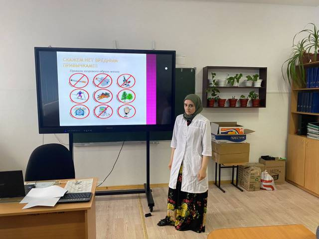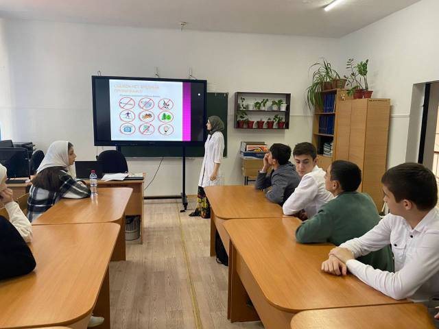 Медицинским работником Эдилсултановой М.И проведена профилактическая беседа с учащимися по профилактике раннего вовлечение в незаконное наркопотребление и формирования культуры ЗОЖ.