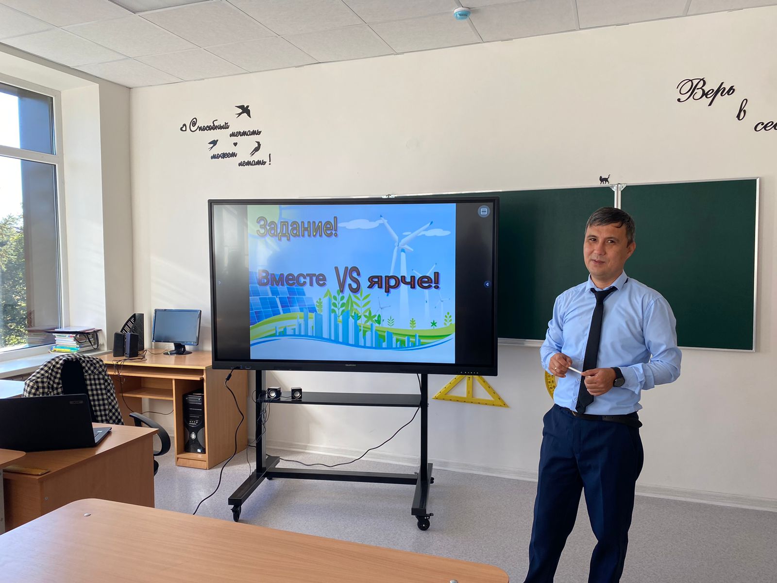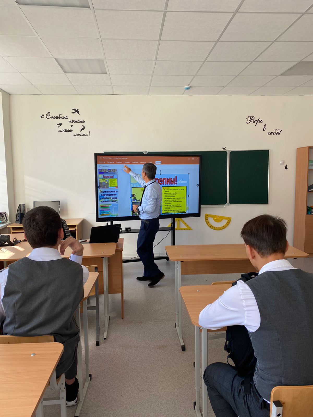В целях популяризации культуры бережливого отношения к природе и демонстрации современных энергоэффективных технологий в МБОУ "Гимназия №2" учитель физики Т.К Испергенов провел внеурочное мероприятие "Время думать иначе"