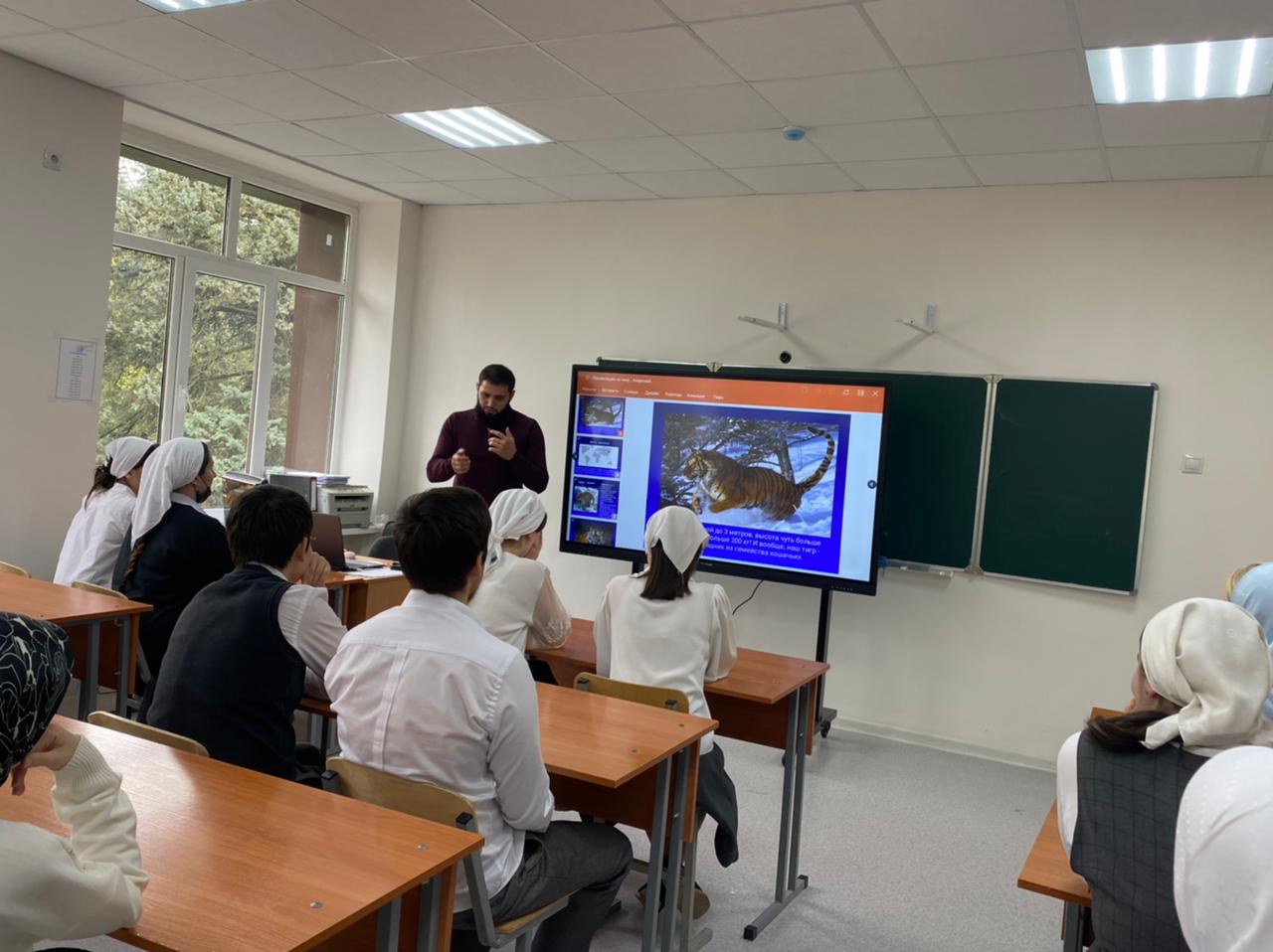 22.09.202222.09.2022 года в МБОУ "Гимназия №2" г. Грозного был проведен Всероссийский урок Тигра. Целью данного урока является – привлечь внимание к проблеме уязвимости тигров (на примере амурского тигра) в современном мире и к вопросам защиты тигров и среды их обитания.Урок был построен в интерактивной форме. Учитель Географии Дениев З.С-А провел интересную тематическую беседу и демонстрацию слайдов презентации «Амурский тигр».#УрокТигра