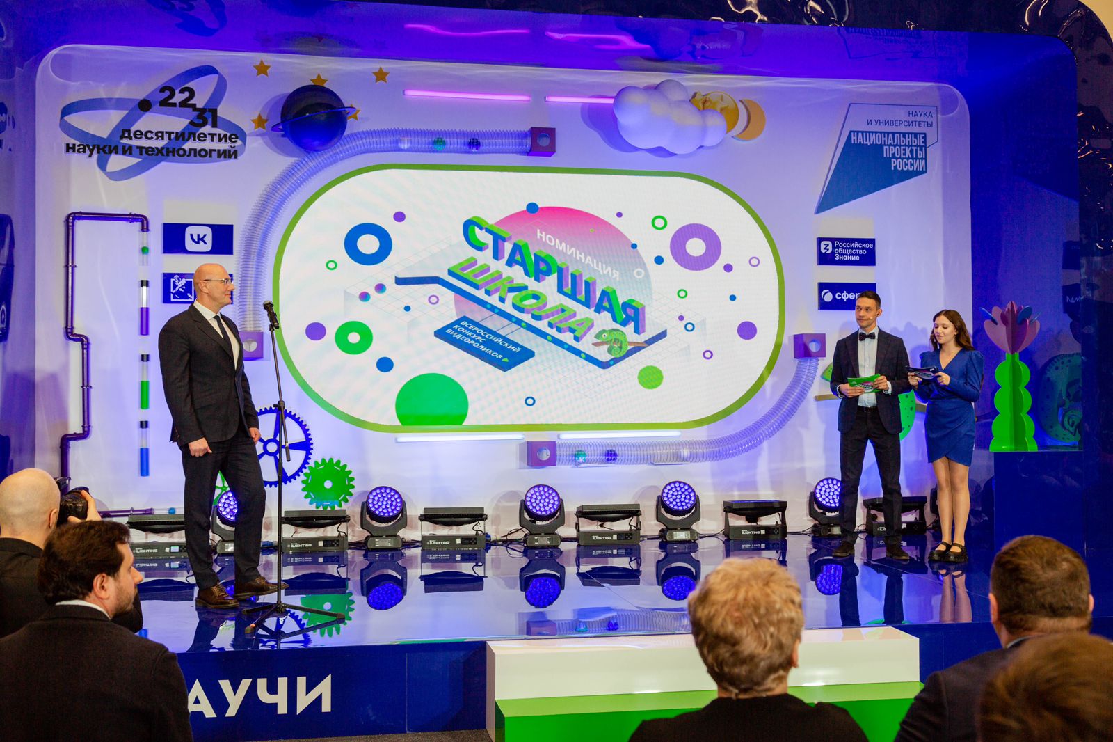 27.04.202326 апреля состоялась церемония награждения победителей второго сезона всероссийского конкурса детского научно-популярного видео «Знаешь?Научи!». Конкурс включен в инициативу «Инфраструктура для популяризации науки, создание контента» Десятилетия науки и технологий и проходит при поддержке национального проекта «Наука и университеты». Конкурс проводился среди учеников 1-11 классов. Для участия в нем было необходимо записать 3-х минутное научно-популярное видео и опубликовать его на сайте nauka.homo-science.ru. Видео должно было в доступной и интересной форме объяснять научную теорию, концепцию или явление. По итогам лучшими стали конкурсные работы 17 школьников из Москвы, Московской области, Ленинградской области, Санкт-Петербурга, Нижнего Новгорода, Самары, Амурской области, Краснодарского края.Победители и призеры конкурса получили образовательные курсы, технику и сертификаты на ее покупку, поездки и экскурсии, модный мерч и многое другое. Также специальные призы вручили школьным учителям-наставникам финалистов, а для школ-победителей подготовили особые призы, среди которых цифровые лаборатории для практического изучения естественнонаучных дисциплин, робототехнические наборы и конструкторы, а также оборудование для лабораторий аддитивных технологий.«Конкурс «Знаешь? Научи!» включен в программу Десятилетия науки и технологий и даёт широкие возможности для самореализации и творчества школьников. В этом году для конкурса юные исследователи записали более 2,5 тысяч видеороликов по различным научным тематикам. Также важно отметить и работу учителей, которые помогали и активно поддерживали ребят. Для этого в Год педагога и наставника, объявленный Президентом России Владимиром Путиным, мы ввели специальную номинацию. Второй сезон конкурса объединил более 7,5 тысяч учащихся со всей страны. Самыми активными регионами стали Костромская, Волгоградская область и Ямало-Ненецкий автономный округ. Уверен, конкурсная работа каждого школьника – важный вклад в популяризацию отечественной науки», – прокомментировал заместитель Председателя Правительства Российской Федерации, сопредседатель Координационного комитета Десятилетия науки и технологий Дмитрий ЧернышенкоПобедители определялись в трёх возрастных категориях, пяти тематических номинациях и трёх специальных номинациях. Возрастные категории были разделены на «Младшую школу», «Среднюю школу» и «Старшую школу», в каждой из которых соревновались дети соответствующих возрастов. В список тематических номинаций вошли «Естественные науки», «Информационные технологии и точные науки», «Место человека во вселенной», «Науки будущего», «Социальные и гуманитарные науки». Специальные номинации были посвящены темам: «Цифровой взгляд на мир» от цифровой образовательной платформы «Сферум», «Авиация будущего» от партнера конкурса ПАО «Объединенная авиастроительная корпорация», «Большой эксперимент на большой перемене» от АНО «Большая перемена». Дополнительно в Год педагога и наставника был определен лучший наставник участников конкурса, а также проведены дополнительные активности конкурса – «Марафон регионов» и «Школьная эстафета».Победителями в категории «Младшая школа» стали: Кира Иванова из Республики Татарстан (1 место), Люсия Гаспарян из Московской области 