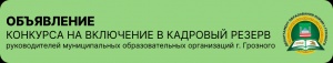 ОБЪЯВЛЕНИЕ КОНКУРСА НА ВКЛЮЧЕНИЕ В КАДРОВЫЙ РЕЗЕРВ РУКОВОДИТЕЛЕЙ МУНИЦИПАЛЬНЫХ ОБРАЗОВАТЕЛЬНЫХ ОРГАНИЗАЦИЙ ГОРОДА ГРОЗНОГО