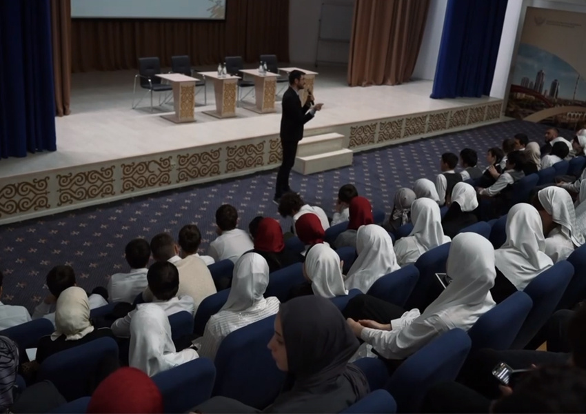 Алихан Динаев провел мастер-класс для школьников, представив алгоритм решения заданий ЕГЭ по обществознанию. Он в доступной и яркой форме показал 11-классникам, как всего за 20-30 минут можно научиться успешно выполнять на первый взгляд сложные задания и легко выучить непростые обществоведческие понятия.