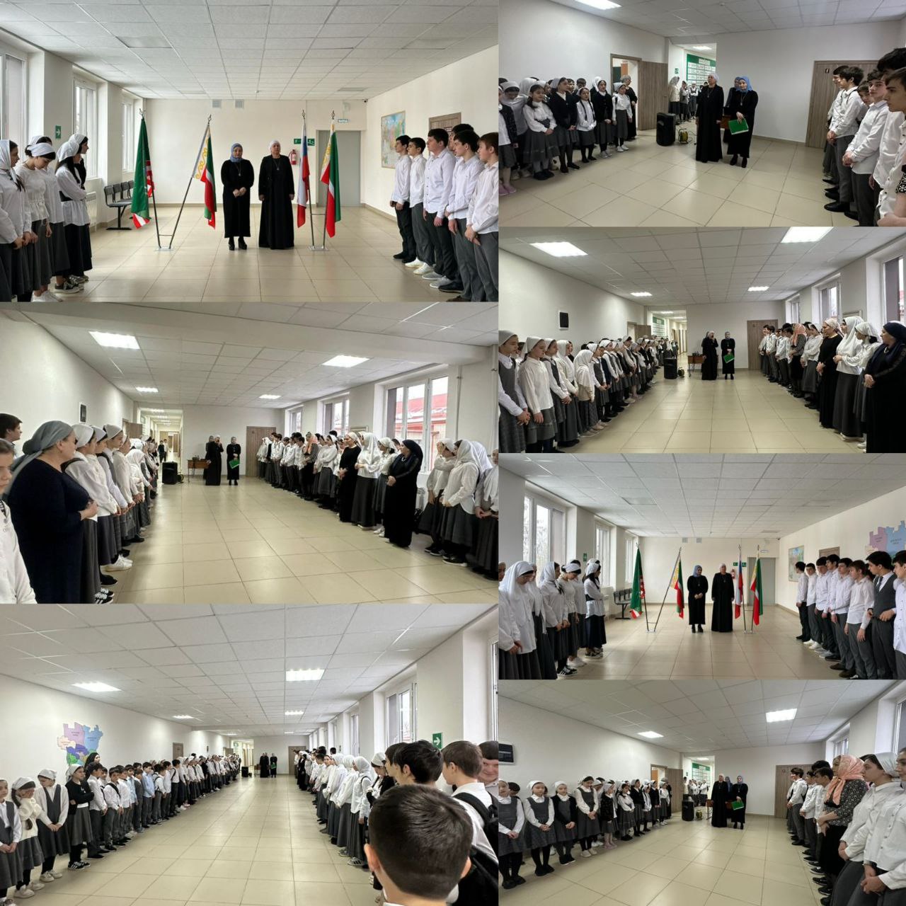 Неделя в МБОУ "Гимназия 2" г.Грозного началась с традиционного исполнения гимнов Российской Федерации и Чеченской республики.