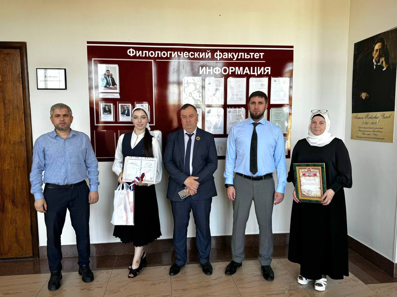 На базе ФГБОУ ВО «Чеченский государственный университет им. А.А. Кадырова» прошла Федеральная олимпиада школьников по родным языкам и литературам России, организованная совместно с Северо-Восточным федеральным университетом. Цель олимпиады - выявление и развитие у обучающихся творческих способностей, интереса к научно-исследовательской деятельности, пропаганда научных знаний и создание условий для поддержки одарённых детей. Олимпиада состояла из двух этапов и охватывала 62 предмета и профиля, включая русский как иностранный, английский язык, русский язык и литературу, родные языки и литературу и другие. Ученица Гимназии № 5 города Грозного Амира Элембаева стала призером олимпиады по профилю «Родные языки». Декан филологического факультета ЧГУ Аюб Абубакаров наградил её дипломом III степени, медалью и ценными подарками. Кроме того, за популяризацию чеченского языка, профессионализм и высокую подготовку школьников благодарственным письмом отметили учителя чеченского языка и литературы Гимназии № 5 города Грозного Исакову Бирлант Нардиновну. Дала тlаьхье беркате йойла! #олимпиадноедвижение #олимпиадапороднымязыкам #призовоеместо #ЧГУимениААКадырова #Грозный #школыГрозного #школьникиГрозного #одаренныедети #системаобразованияГрозного #ЗелимханАхматов #ДепобрГрозный