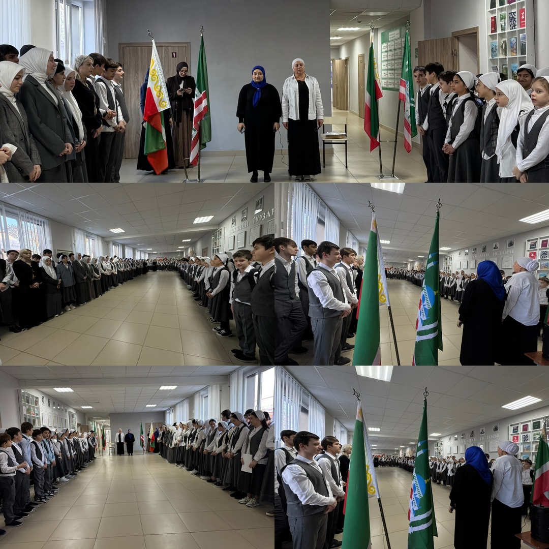 Новая учебная неделя в МБОУ «Гимназия №2»г. Грозного началась с торжественного поднятия государственных флагов Российской Федерации и Чеченской Республики под исполнение гимнов.