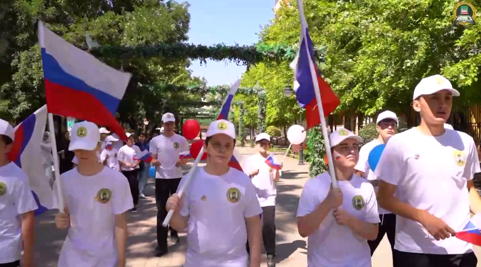 В этот день Департамент образования Мэрии Грозного организовал на бульваре имени Махмуда Эсамбаева акцию «Российский триколор - звучит гордо!».