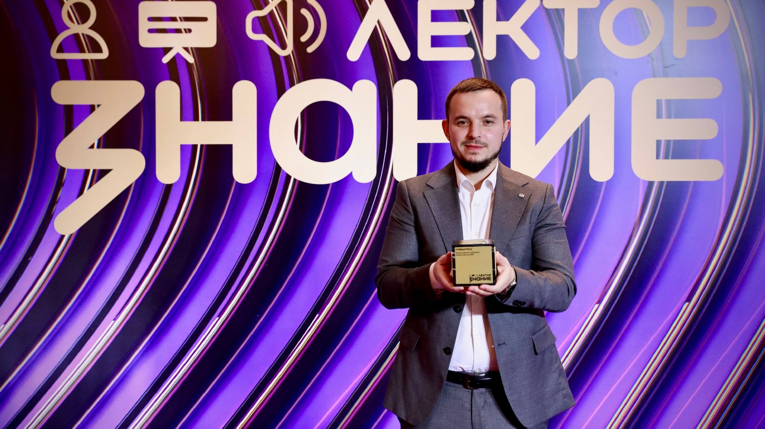 Руслану Руслановичу вручили символ проекта - куб из чёрного мрамора, а также предоставили право заключить контракт с Обществом «Знание» на проведение лекций в нашем регионе.