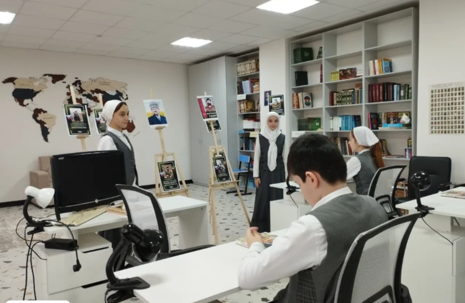 В рамках исполнения плана мероприятий, приуроченных Году Защитника Отечества в МБОУ "Гимназия 2" г.Грозного проведена библиотечная выставка-обзор"Герои Отечества".