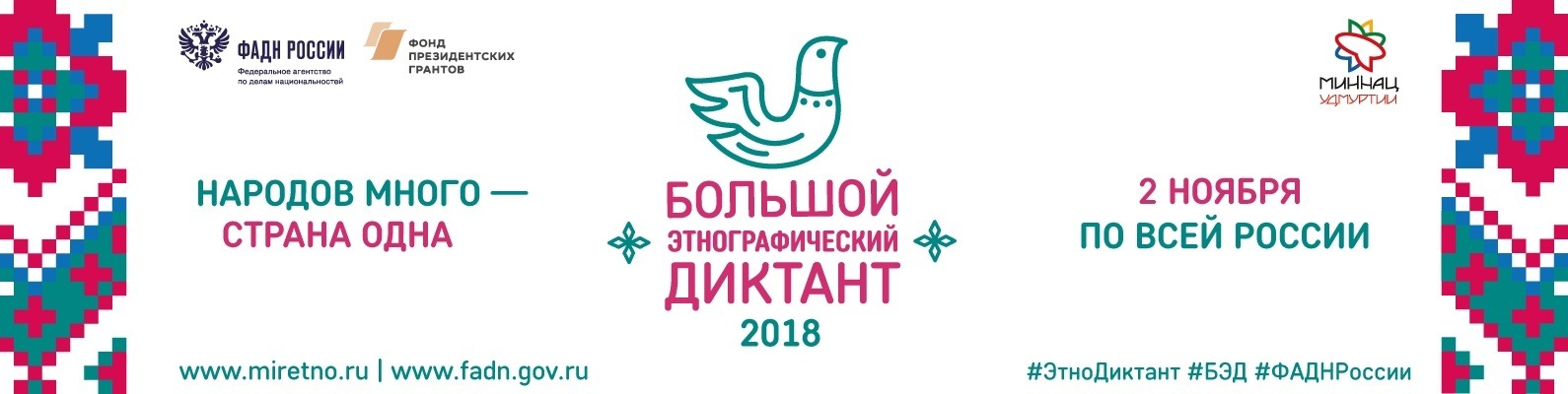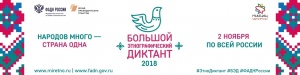 29.10.20182 ноября 2018 года на площадке МБОУ "Гимназия №2" пройдет Всероссийская просветительская акция "Большой этнографический диктант". Текст диктанта включает в себя 30 вопросов: 20 федеральных и 10 региональных. Время выполнения 30 минут. Регистрация участников 9.00-9.40. Участие в диктанте 10.00-10.45. Приглашаются родителя, учителя и гимназисты с 14 лет. Примем участие в акции вместе со всей страной!