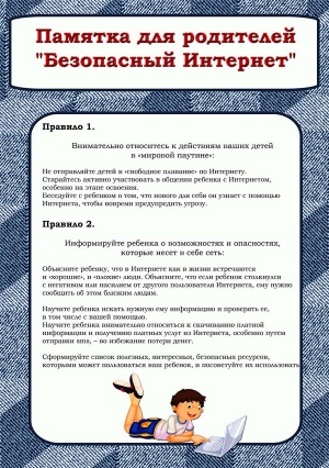Памятка и рекомендации "Безопасный интернет" для родителей.