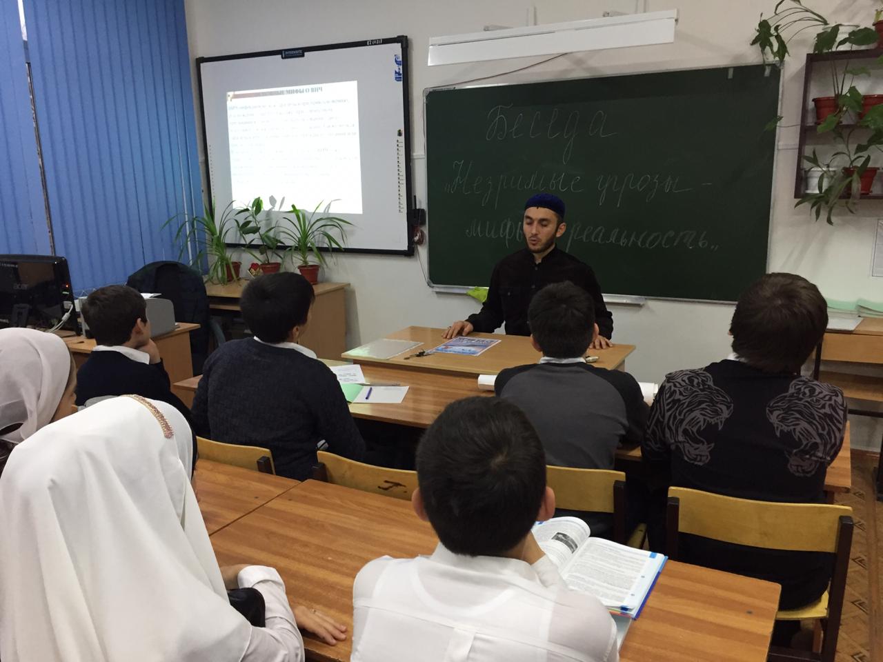 Педагог по ДНВ МБОУ "Гимназия №2" Ибрагимов Х.Б. провел беседу со старшеклассниками "Терроризм - угроза обществу".