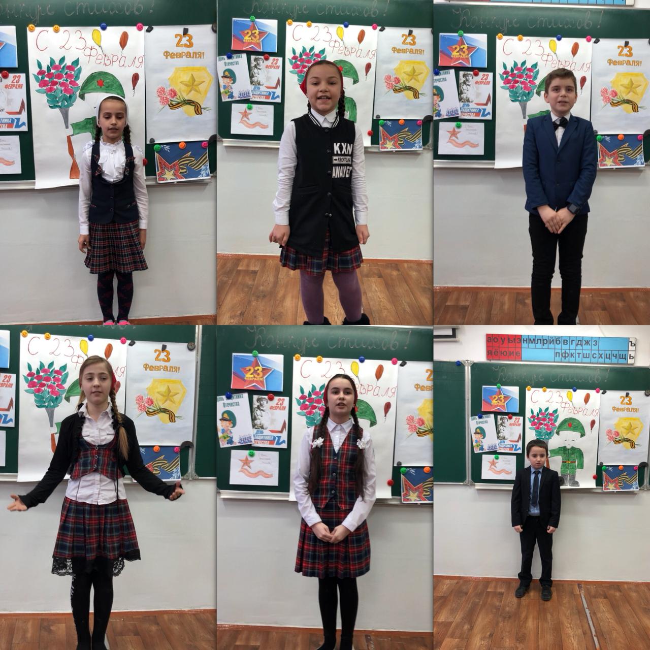 22.02.2019В начальной школе МБОУ "Гимназия №2" проведен конкурс чтецов «С днем защитников Отечества». Конкурс прошел в теплой творческой атмосфере. Детям очень понравились стихи, было видно, что каждый ученик, вкладывает душу в своё исполнение и сопереживает за своих товарищей, желая им успеха.