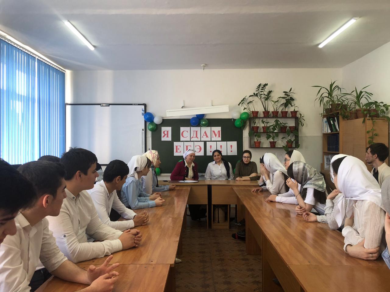 23.04.2019В рамках акции «100 баллов для Победы» состоялась встреча учащихся 11 класса с выпускницей гимназии Абдурахмановой Марьям. которая набрала 96 баллов по русскому языку, 67 по литературе и 60 баллов по английскому языку. Она поделилась своим опытом подготовки к ЕГЭ, как распределить свое время при подготовке к экзаменам, какими книгами и сайтами пользоваться. Общение дало возможность снять эмоциональное напряжение выпускников и пояснить, что при правильной подготовке и уверенности в собственных силах у каждого есть шанс получить на ЕГЭ самый высокий балл, даже без репетиторов.