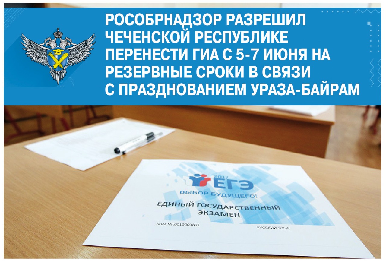 Рособрнадзор разрешил Чеченской Республике перенести ГИА с 5-7 июня на резервные сроки в связи с Ураза- байрам